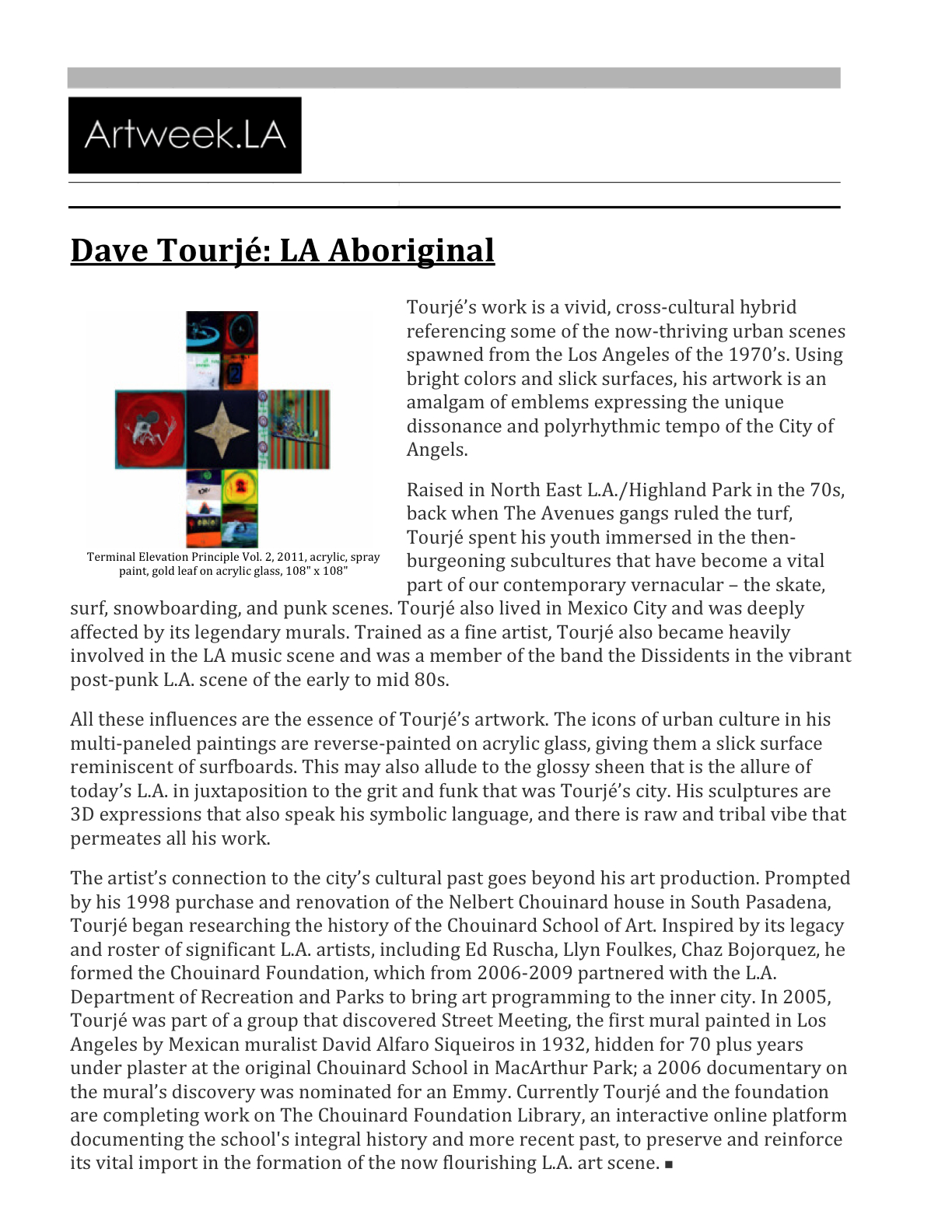 June 9, 2011 Artweek.LA, June 9, 2011 – Dave Tourjé: LA Aboriginal PDF READ MORE Leonardo Vargas in Press 0 Likes