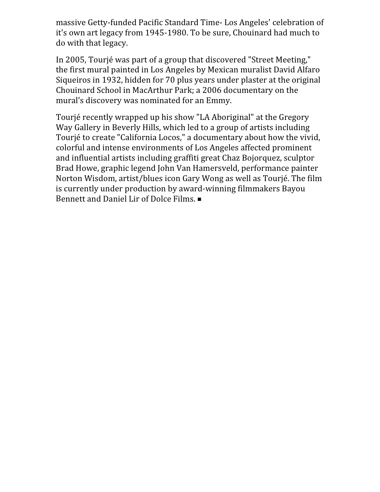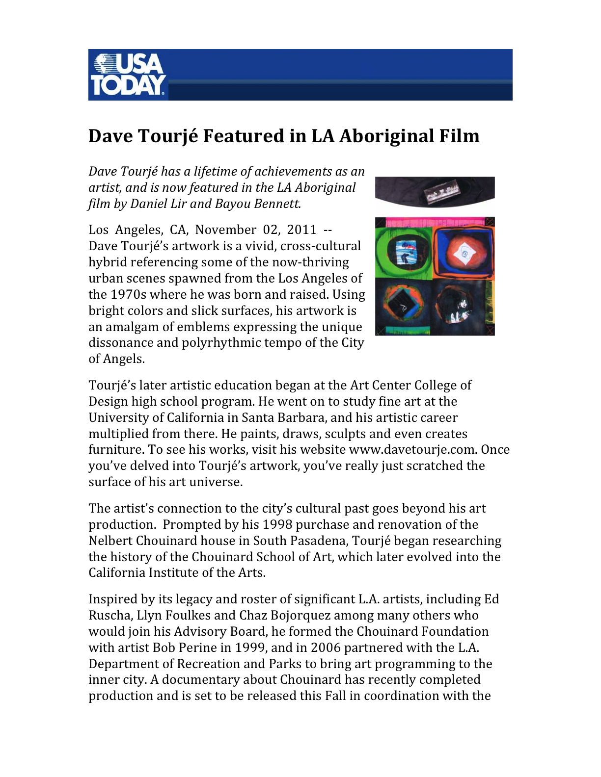 January 13, 2012 USA Today, January 13, 2012 – Dave Tourjé Featured in LA Aboriginal Film PDF READ MORE Leonardo Vargas in Press 0 Likes