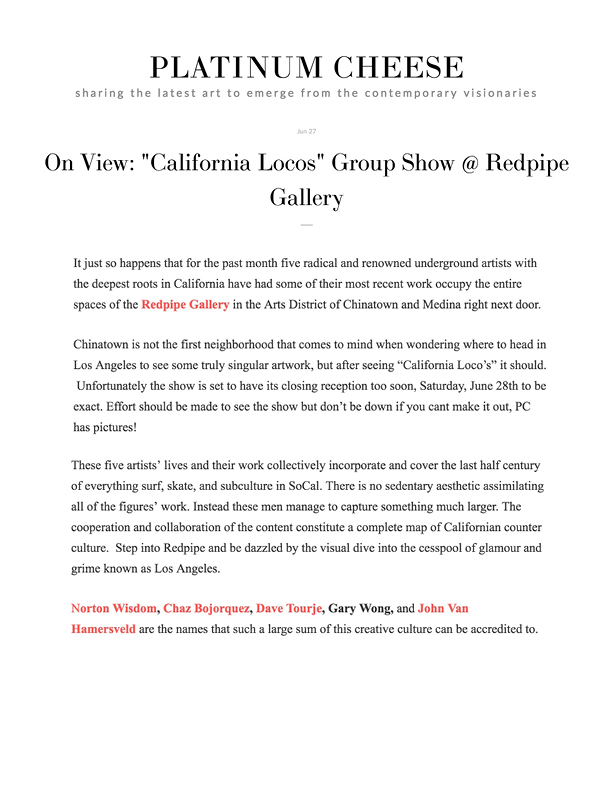 Platinum Cheese, June 27, 2014 – On View: “California Locos” Group Show @ Redpipe Gallery