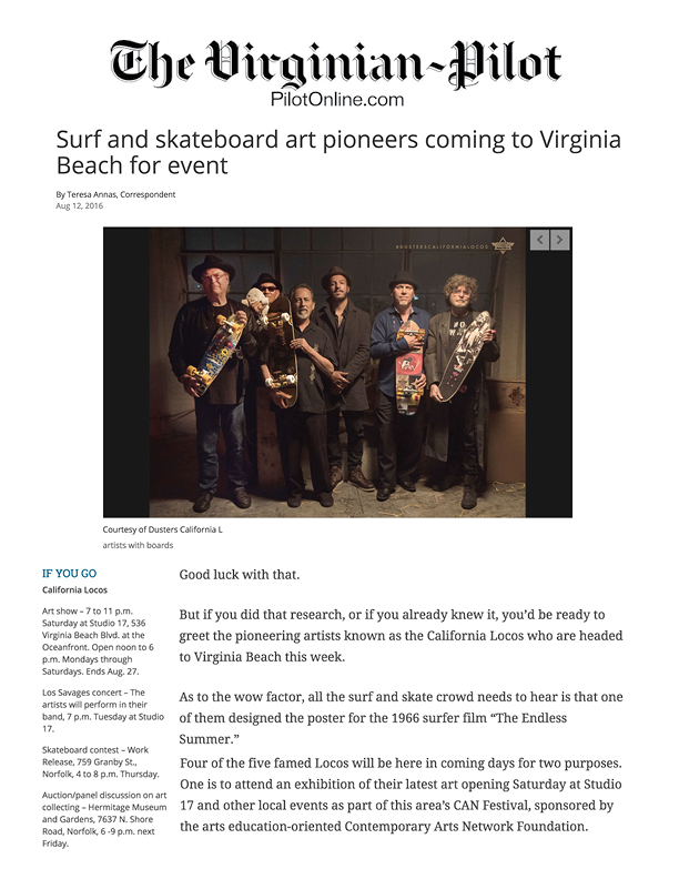The Virginian-Pilot, August 12, 2016 – Surf and skateboard art pioneers coming to Virginia Beach for event