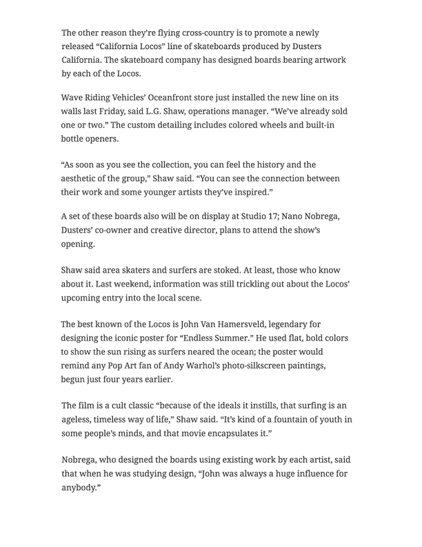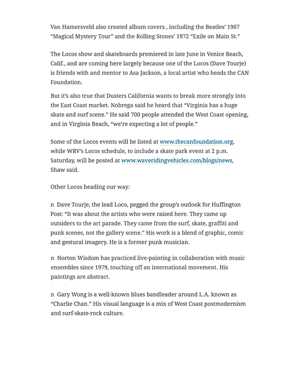 August 12, 2016 The Virginian-Pilot, August 12, 2016 – Surf and skateboard art pioneers coming to Virginia Beach for event PDF READ MORE Leonardo Vargas in Press 0 Likes