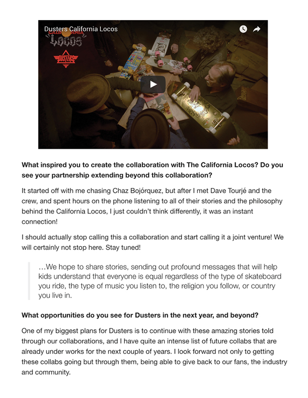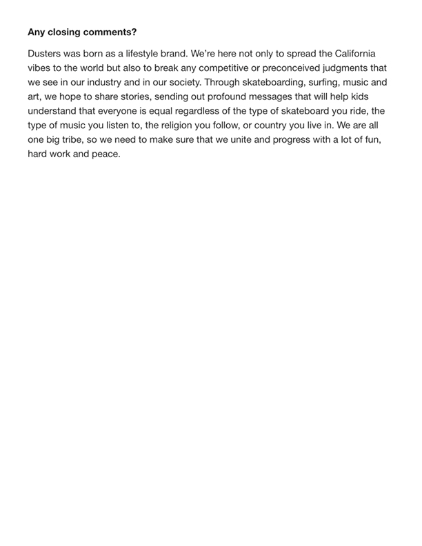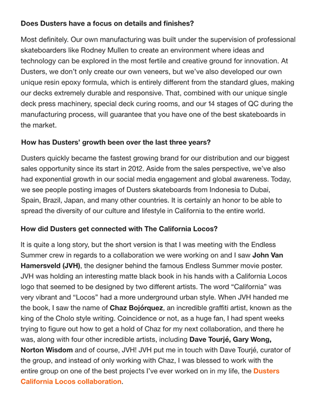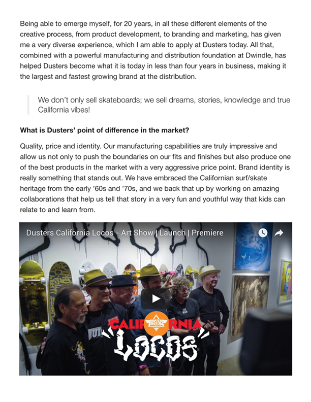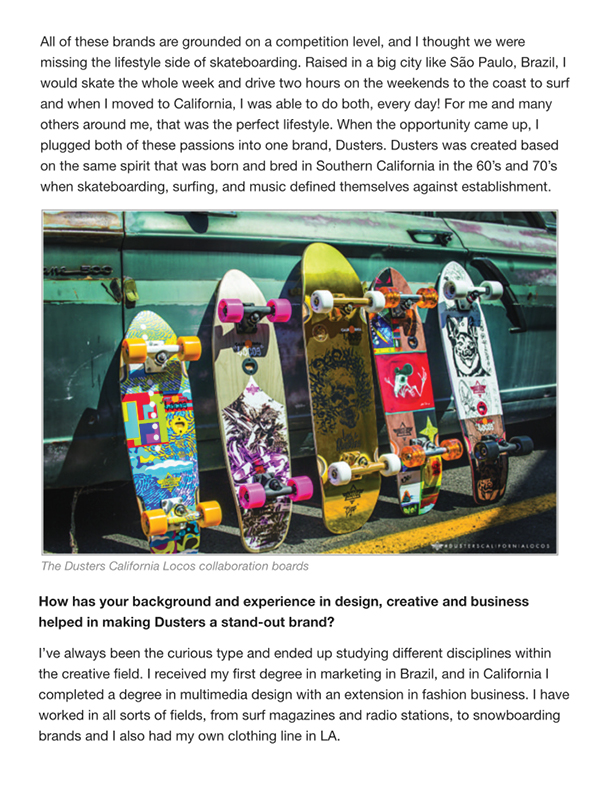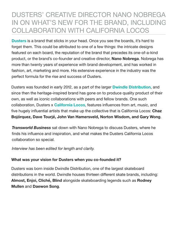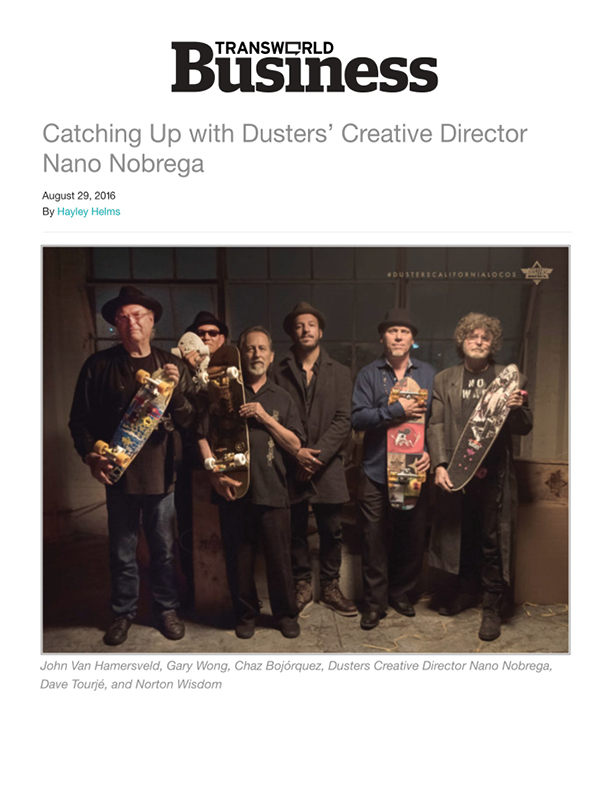 August 29, 2016 Transworld Business, August 29, 2016 – Catching Up with Dusters’ Creative Director Nano Nobrega PDF READ MORE Leonardo Vargas in Press 0 Likes